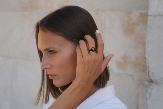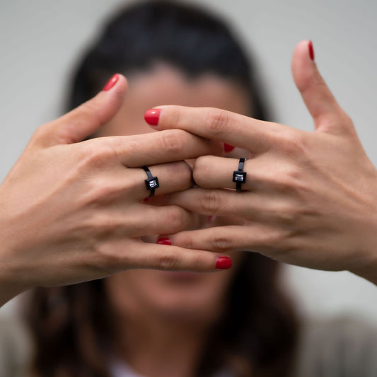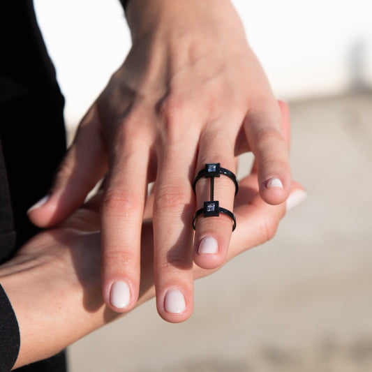 Realizzati in oro lucido 18 carati con una sofisticata finitura brunita nera, questi anelli sono pensati per essere indossati ogni giorno: da soli per un dettaglio minimal oppure impilati per un effetto più personale e dinamico.