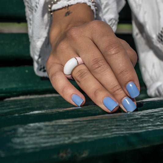 ANELLO CON AGATA BIANCA E SMALTO ROSA