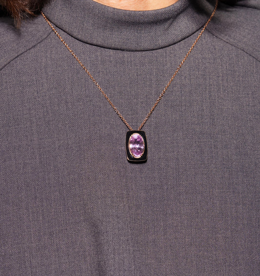 NECKLACE WITH AGATE AND TOURMALINE MOUNTED ON ROSE GOLD, PINK AND WHITE ENAMEL