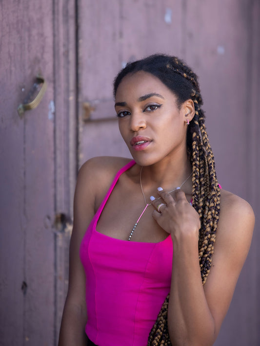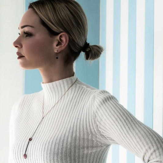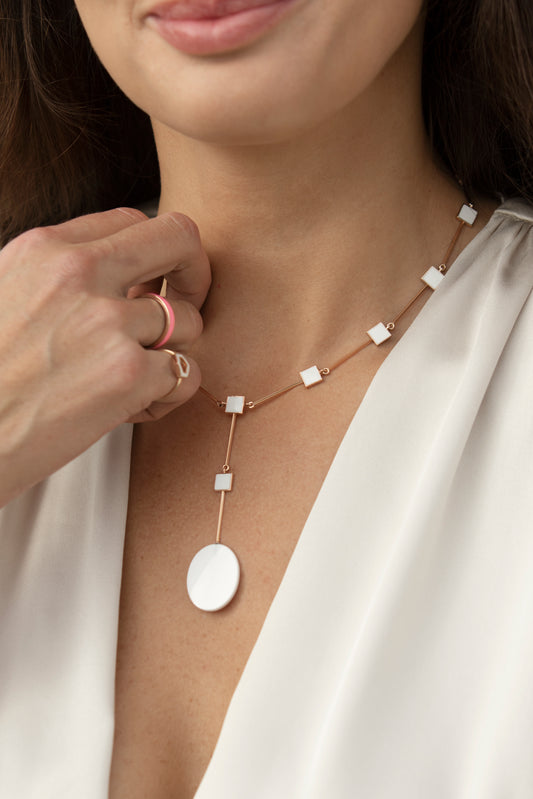 COLLANA CON AGATA E TORMALINA MONTATA SU ORO ROSA, SMALTO ROSA E BIANCO