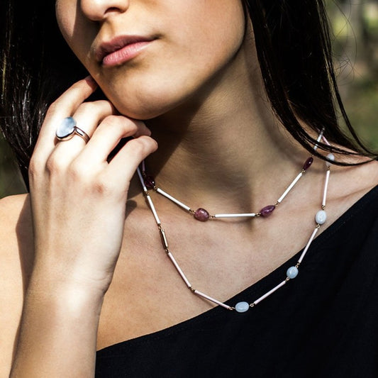 COLLANA CON KUNZITE NATURALE