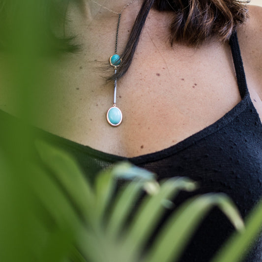 COLLANA IN ORO E NERO BRUNITO CON DUE PIETRE TURCHESE NATURALI