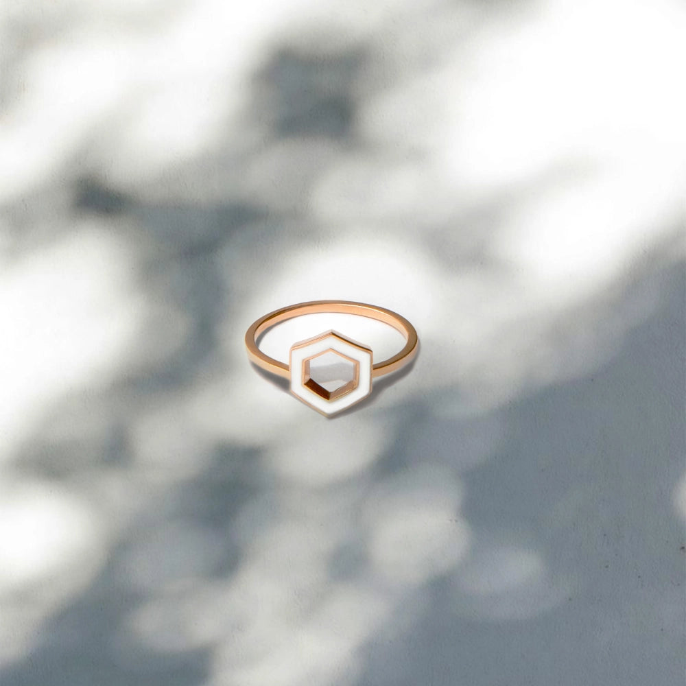 La razionalità della geometria è il cuore della collezione Frame. Anelli dalle linee essenziali disegnano esagoni, cerchi e quadrati. L’oro rosa si combina con una palette cromatica che spazia dal classico al fluo, dal sobrio al vibrante. Indossati singolarmente o mixati con spensieratezza diventano più di un gioiello, sono l’espressione vivace della personalità dove la perfezione geometrica incontra la libertà creativa. Che si tratti di un tocco discreto o di un ensemble audace Frame trasforma l’ordinario in uno straordinario attimo di stile.