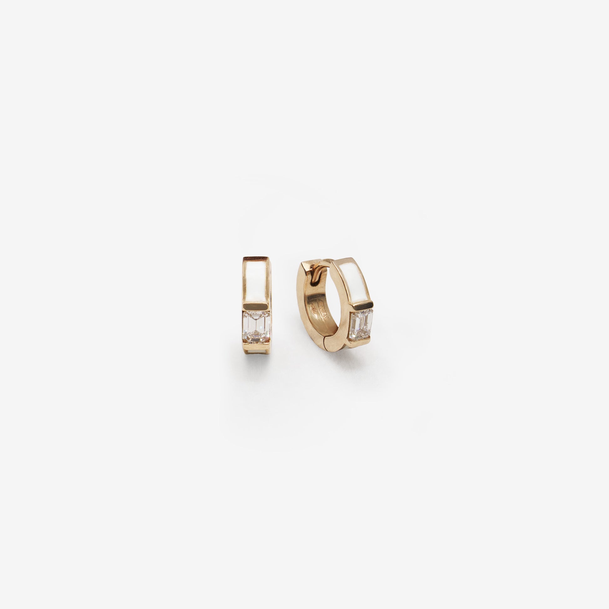 Orecchini in oro rosa 18 carati e smalto bianco con diamante taglio smeraldo di 0.12ct.