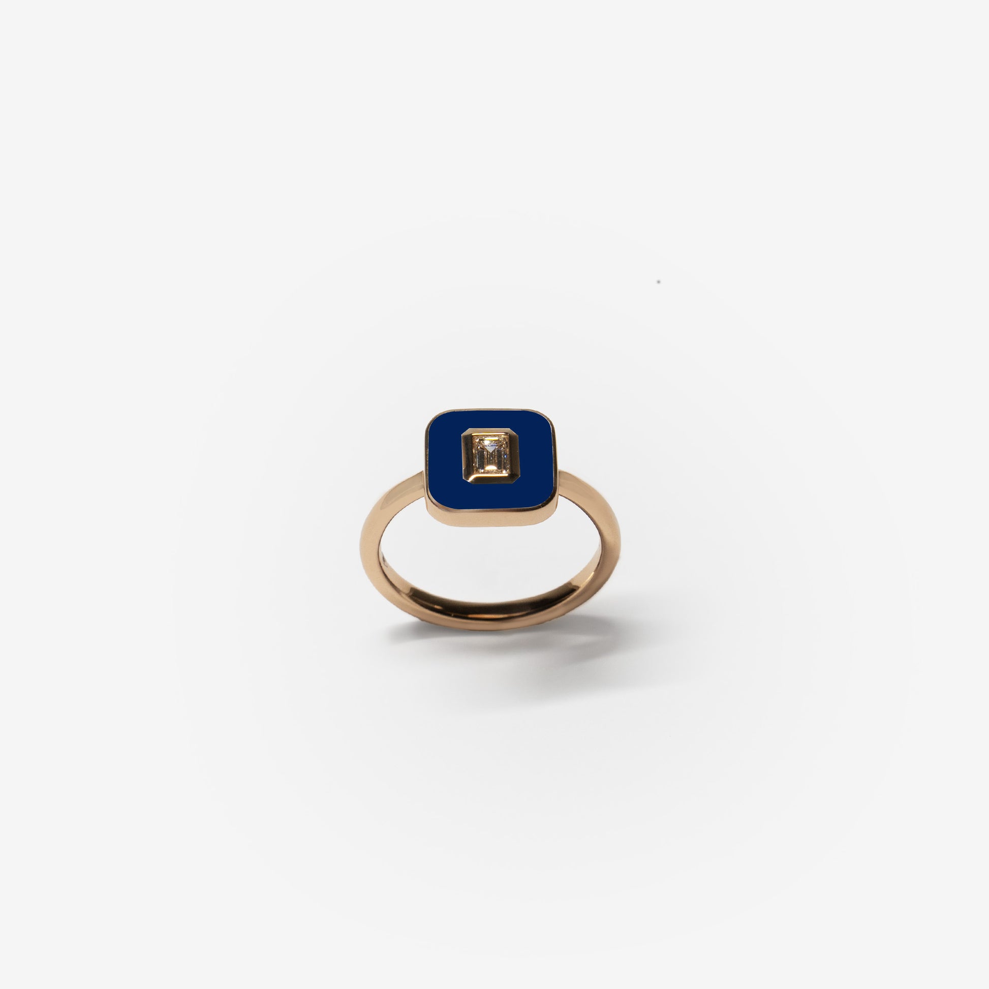 L’Anello Blu della collezione FLAT interpreta la geometria in una forma pura, sottile e perfettamente calibrata. Il quadrato dagli angoli leggermente arrotondati si sviluppa in oro 18 carati, mentre lo smalto blu introduce una nota fresca e vibrante che rende il gioiello immediatamente riconoscibile.