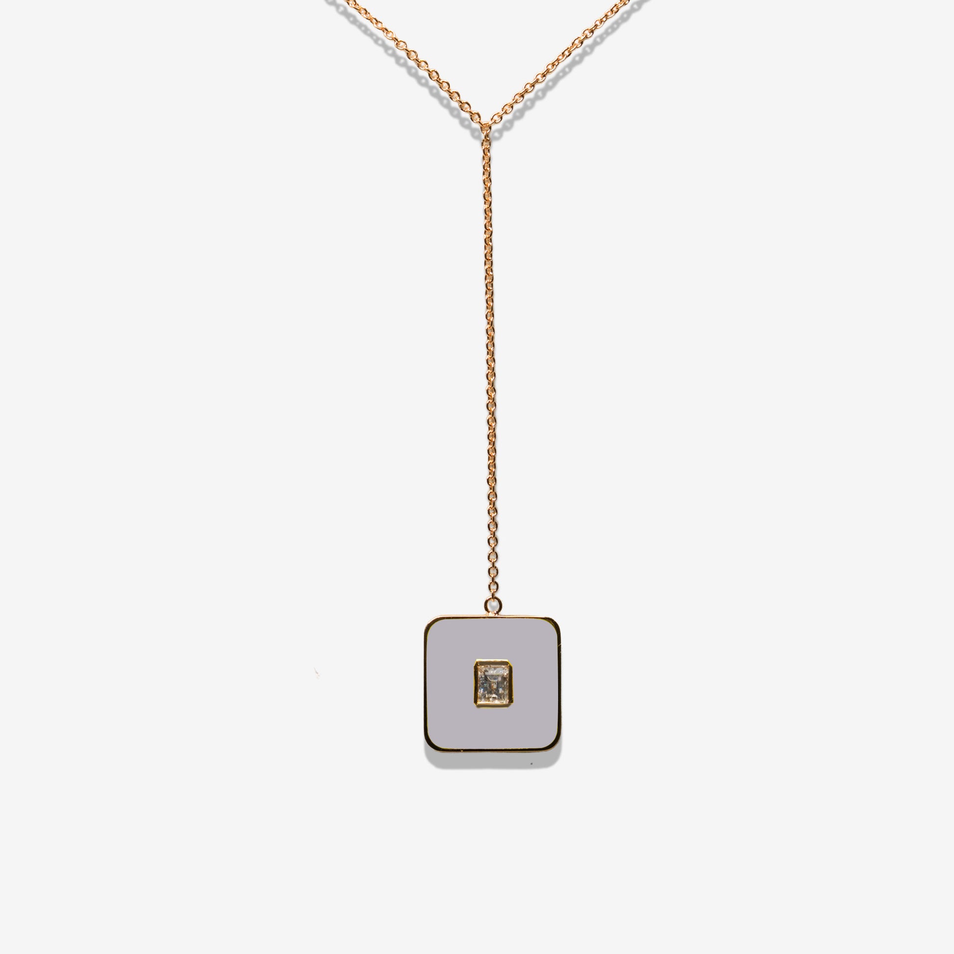 La Collana Grigia della collezione FLAT esprime energia e precisione attraverso una composizione lineare, luminosa e contemporanea. Il pendente quadrato, sottile e perfettamente proporzionato, si inserisce su una catena essenziale in oro 18 carati, mantenendo tutta la purezza formale che caratterizza la collezione.