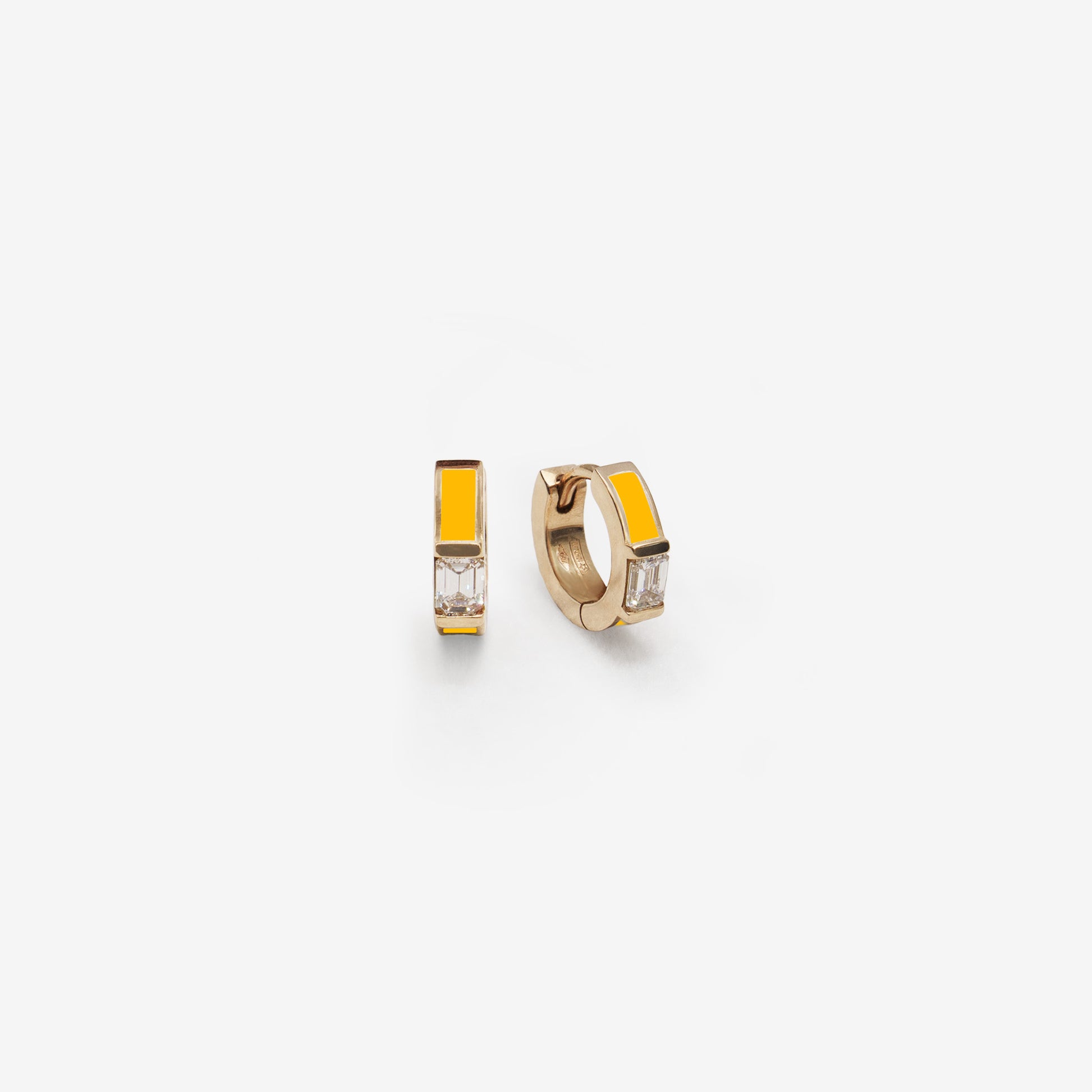 Orecchini in oro rosa 18 carati e smalto giallo con diamante taglio smeraldo di 0.12ct.