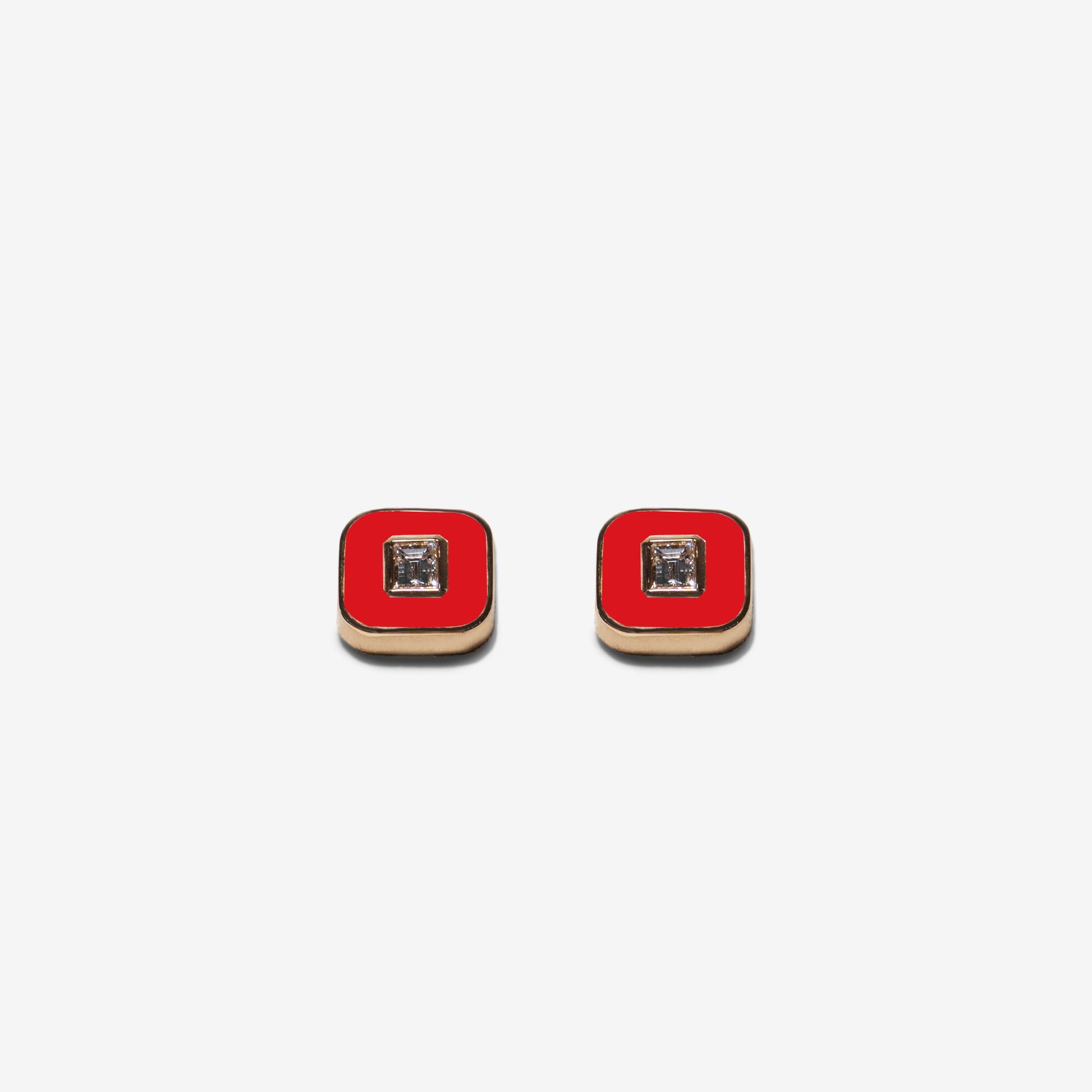 Realizzati in oro 18 carati con smalto rosso, introducono una nota cromatica luminosa e contemporanea, capace di illuminare il volto con discrezione e personalità. Le proporzioni misurate e la pulizia delle linee rendono questi orecchini naturalmente versatili, perfetti da indossare ogni giorno o da inserire in combinazioni più ricercate.