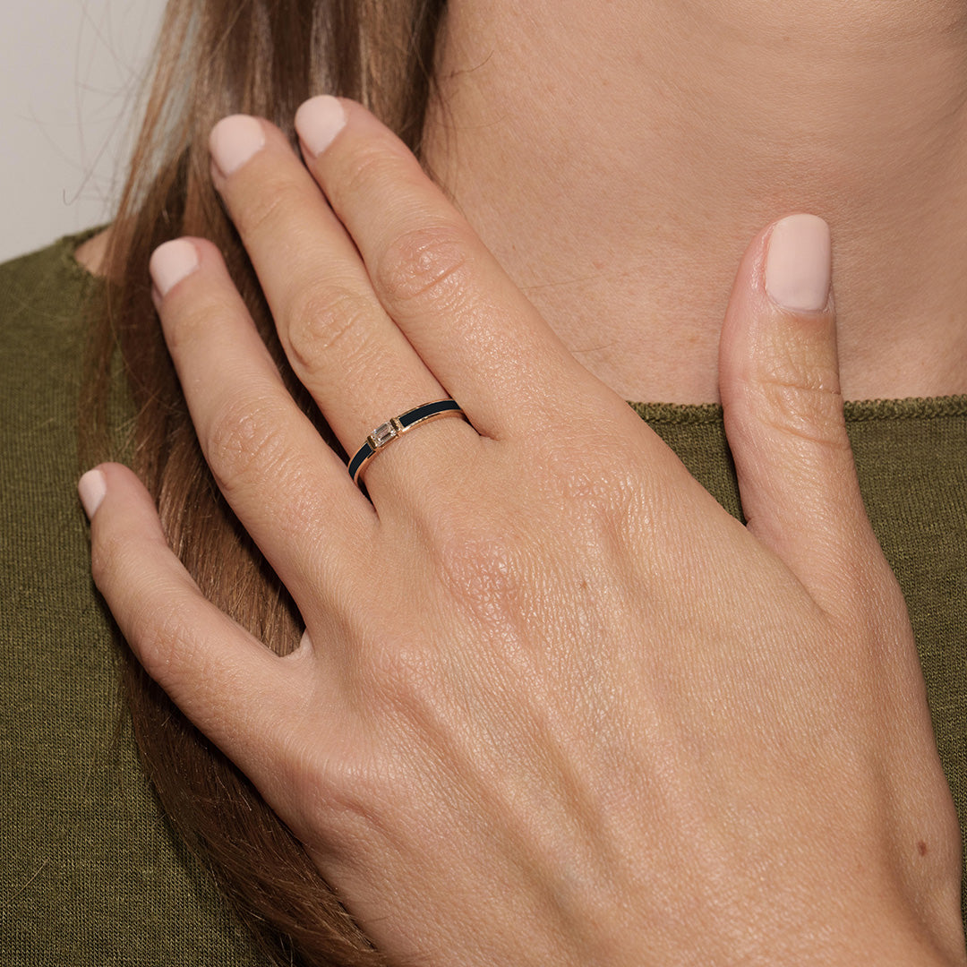 Anello in oro rosa 18 carati, smalto nero e diamante taglio smeraldo